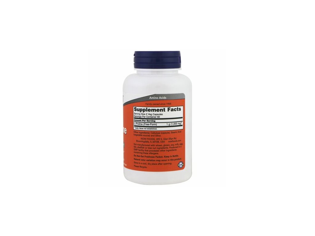 NOW L-Prolin 500 mg, 120 rostlinných kapslí